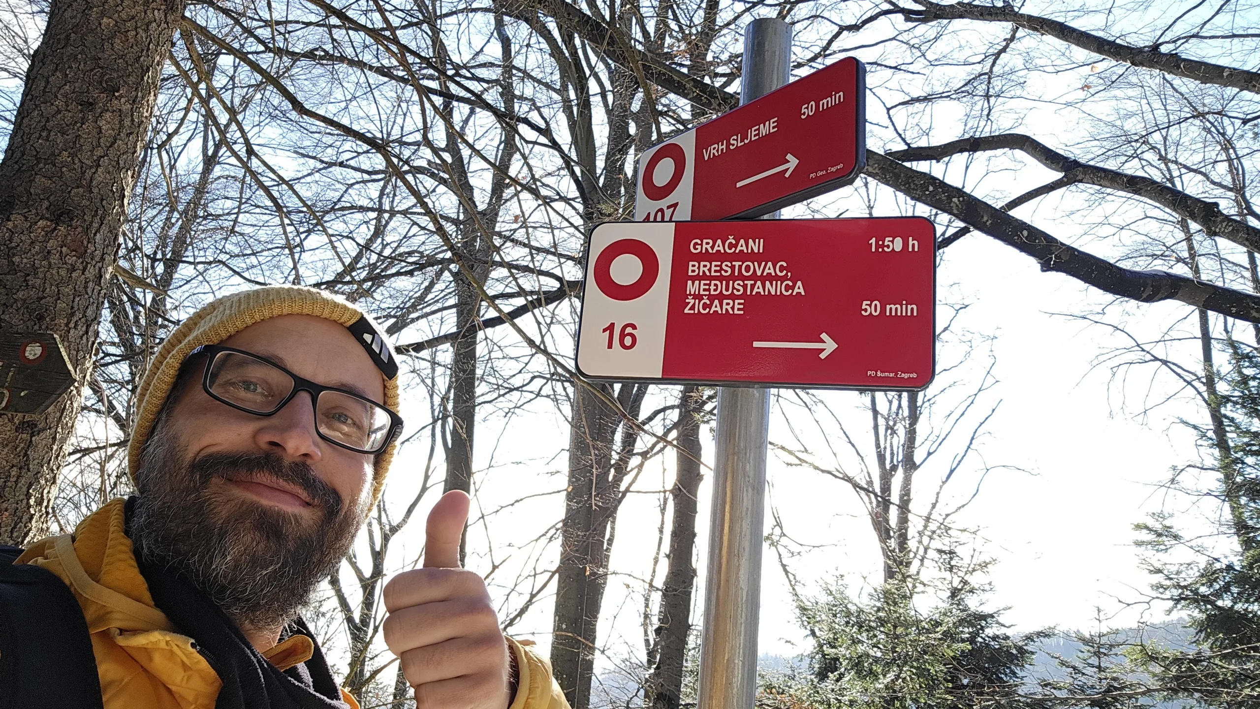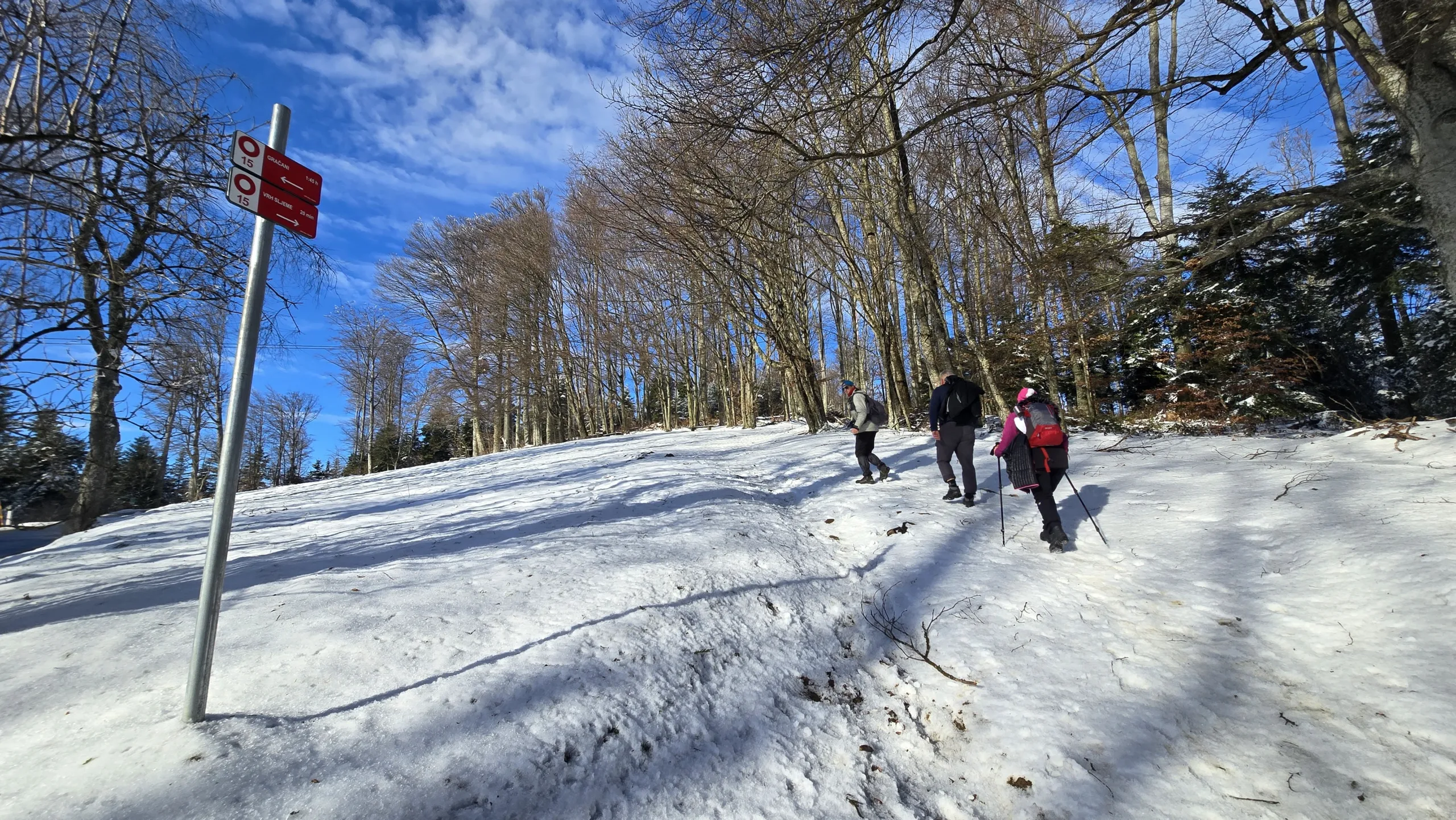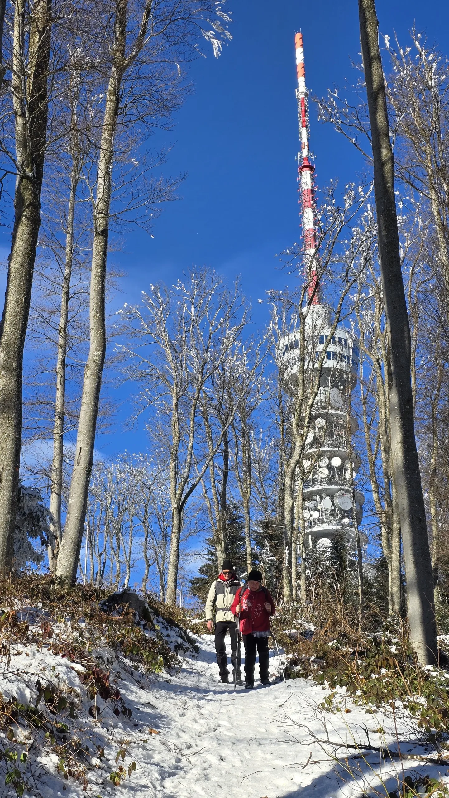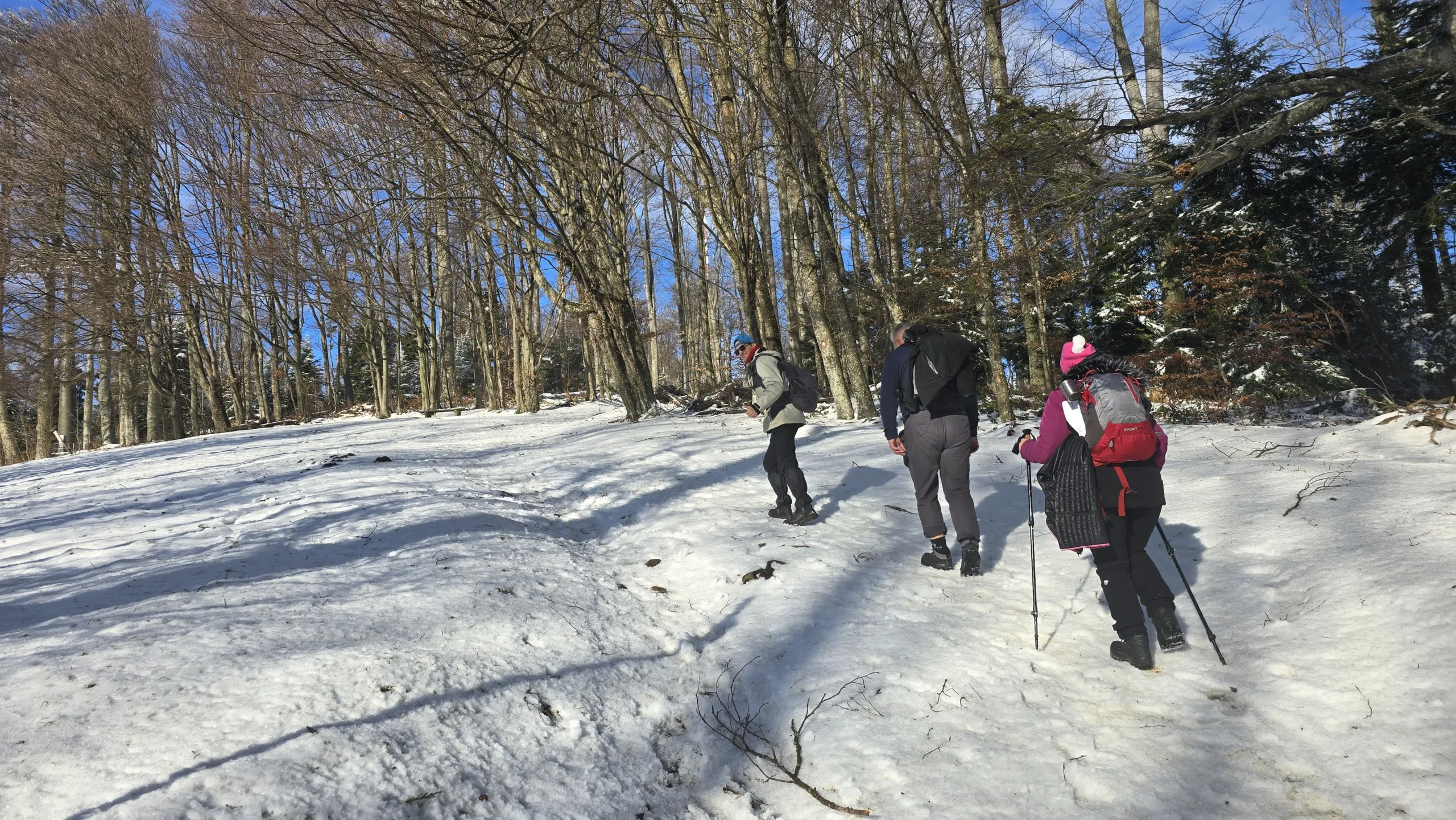 11 planinara našeg Društva pohodilo je 14. prosinca Medvednicu na tradicionalnom zimsko izletu. Vlakom se putovalo do Zagreba, baš kao nekada. Hodalo se od donje stanice žičare do Runolista poluzaleđenom stazom. 8 planinara je produžilo do vrha i obišlo odašiljač s odličnim vidicima. Vrijeme je bilo idealno. Istim putem spust, te nakon toga obilazak lijepog Zagrebačkog adventa.