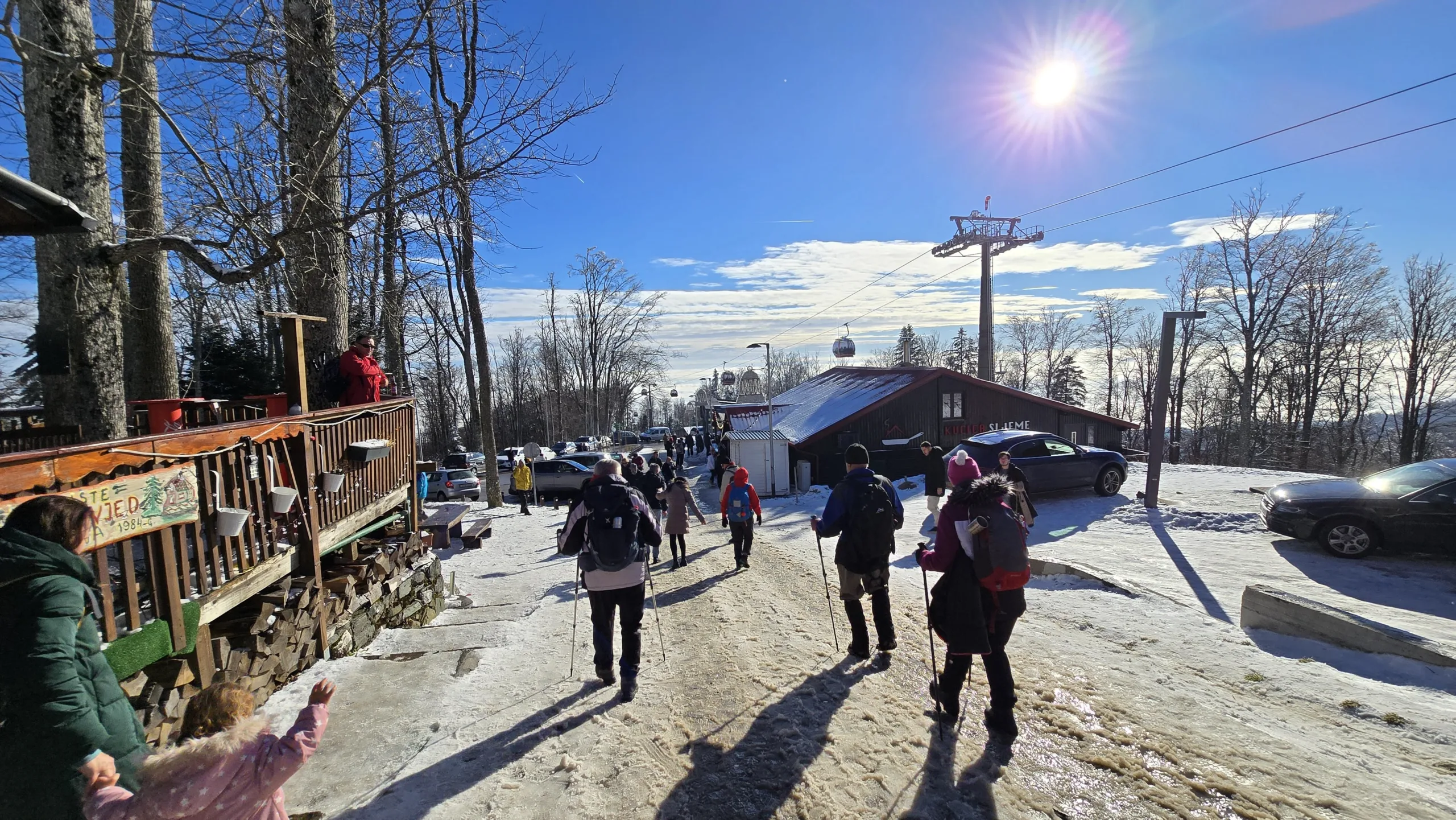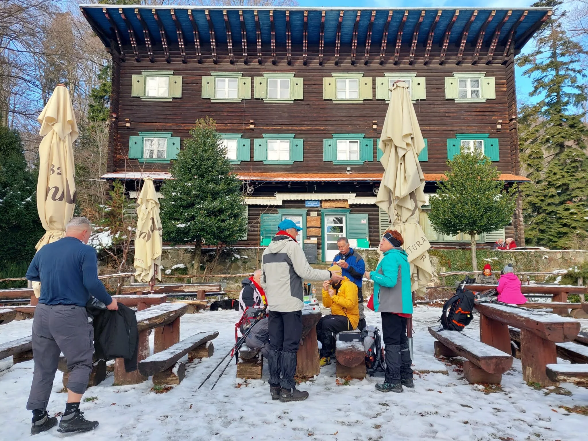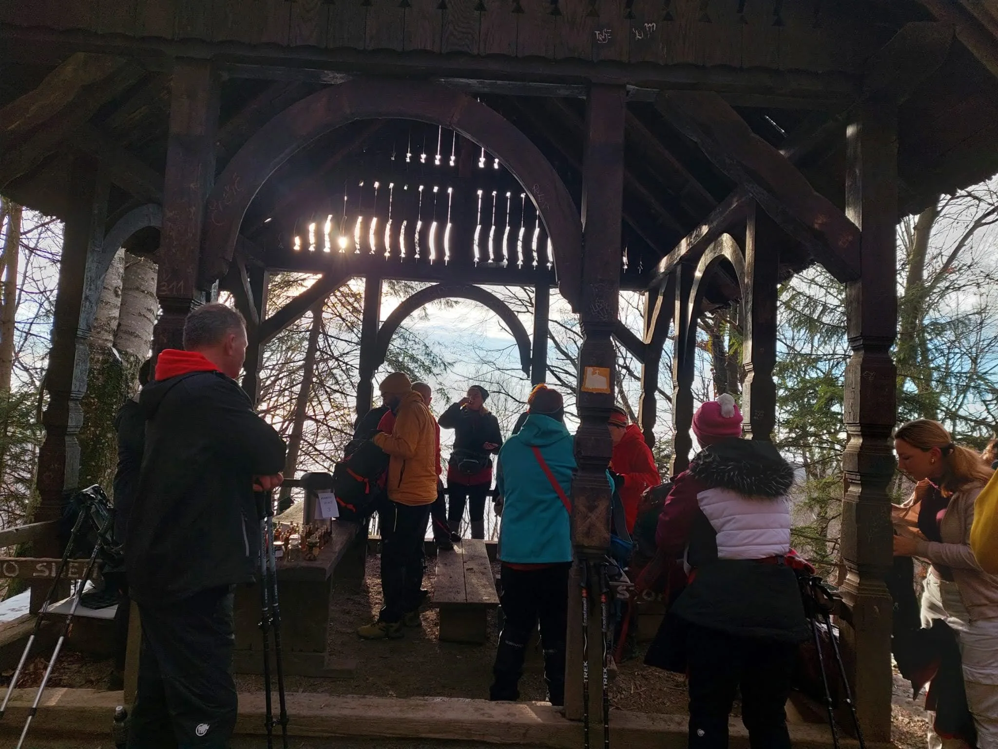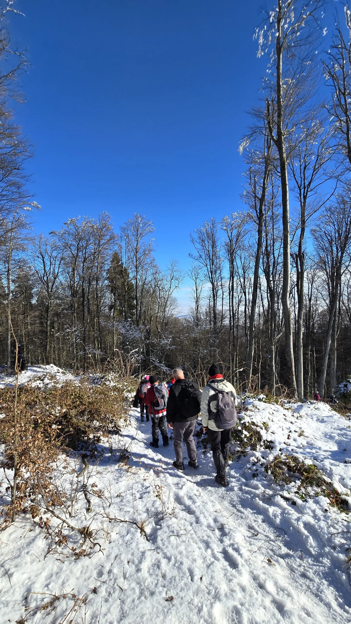 11 planinara našeg Društva pohodilo je 14. prosinca Medvednicu na tradicionalnom zimsko izletu. Vlakom se putovalo do Zagreba, baš kao nekada. Hodalo se od donje stanice žičare do Runolista poluzaleđenom stazom. 8 planinara je produžilo do vrha i obišlo odašiljač s odličnim vidicima. Vrijeme je bilo idealno. Istim putem spust, te nakon toga obilazak lijepog Zagrebačkog adventa.