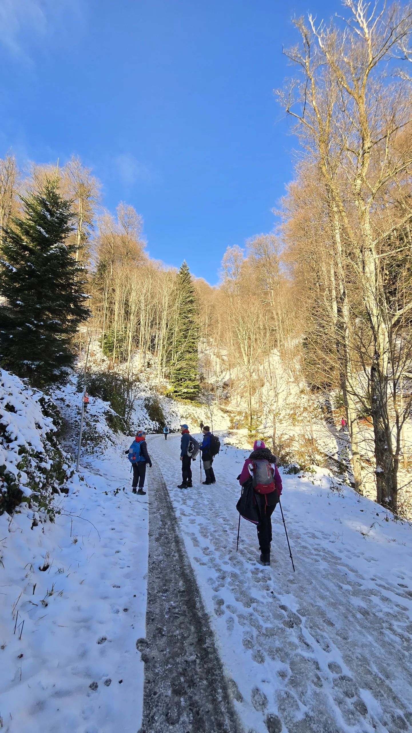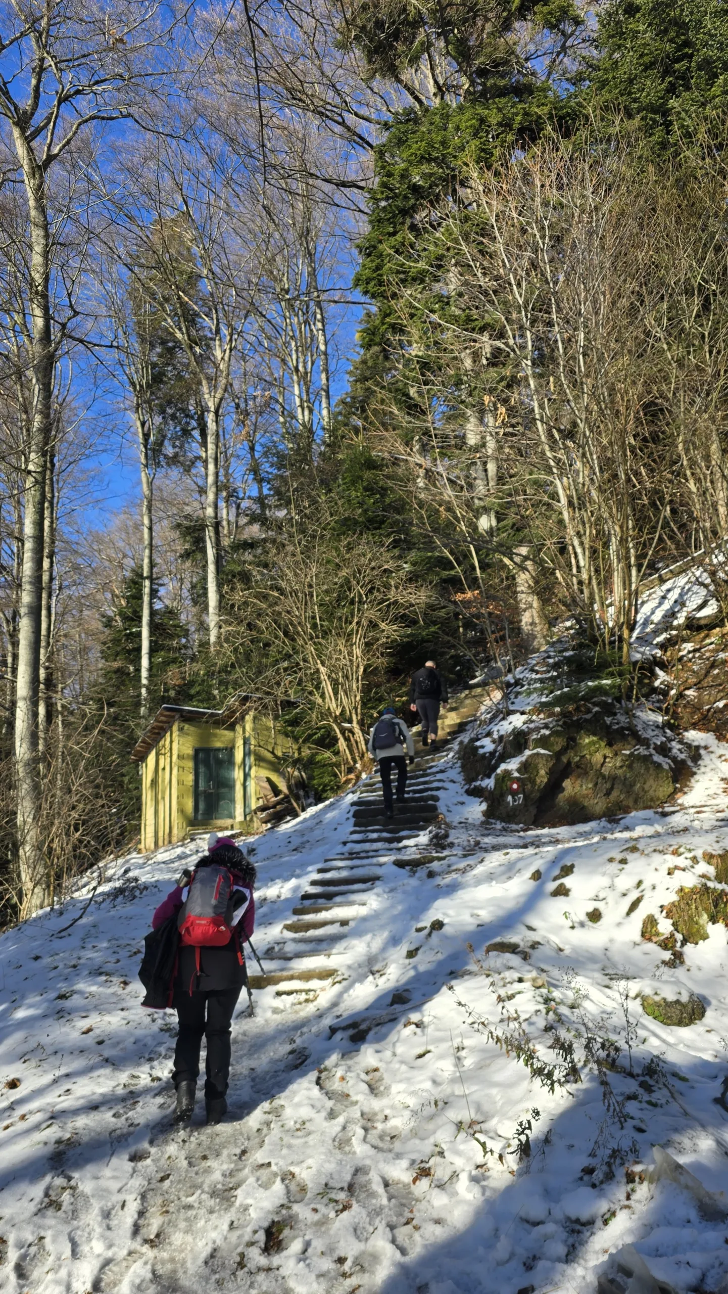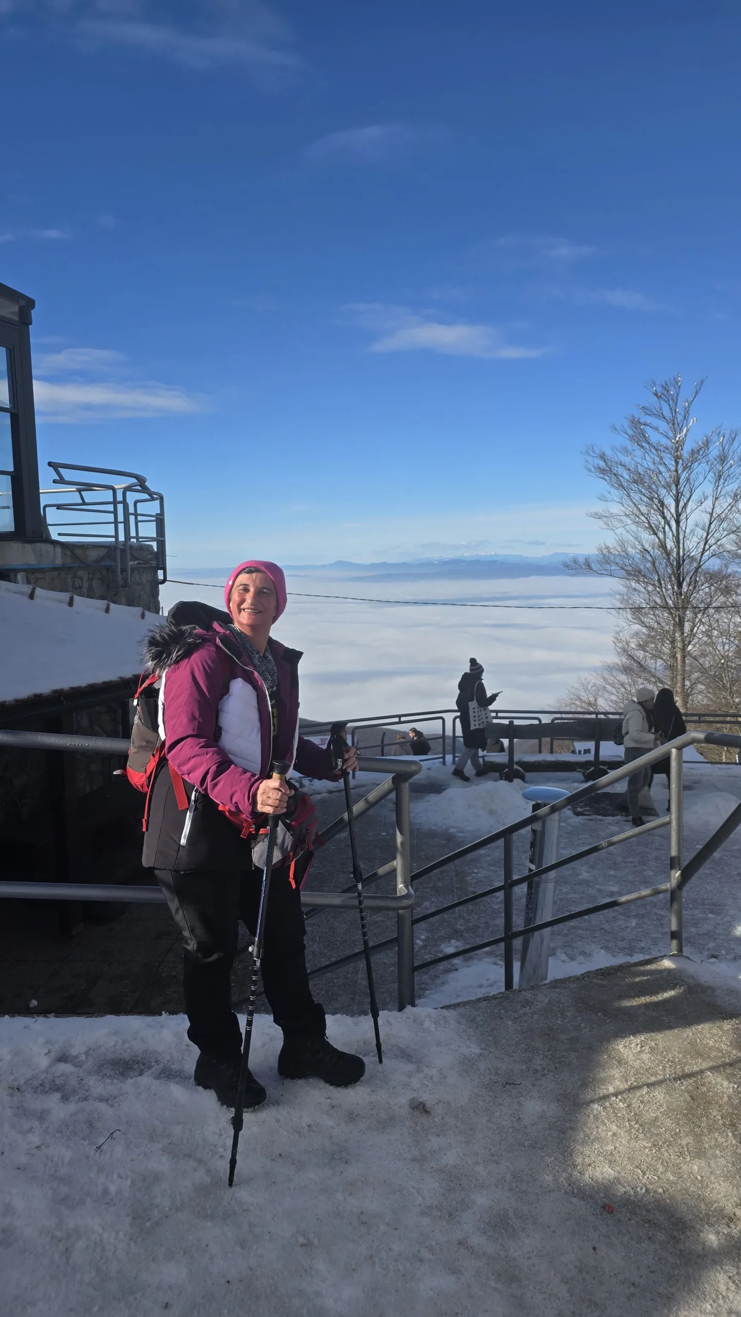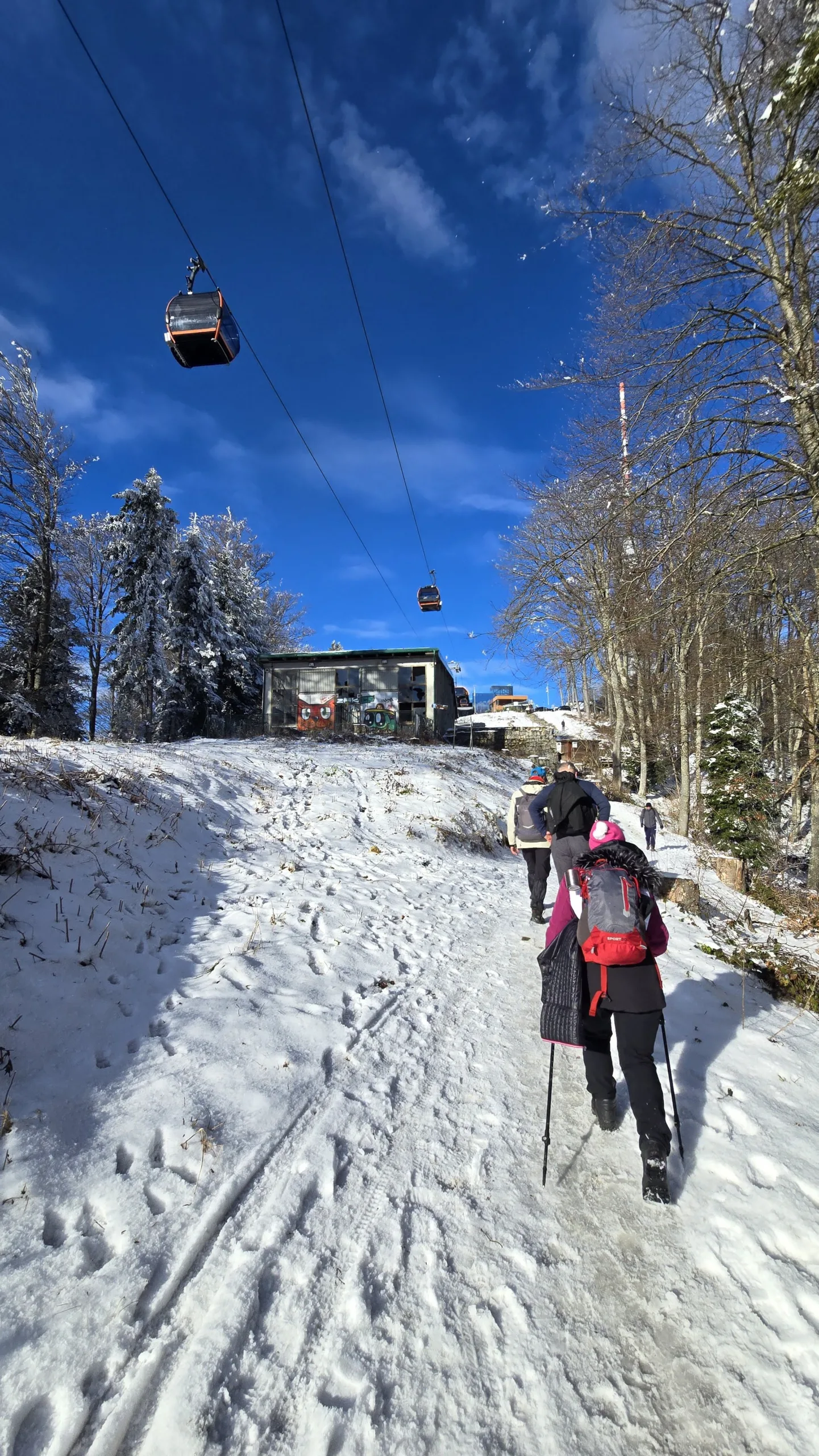 11 planinara našeg Društva pohodilo je 14. prosinca Medvednicu na tradicionalnom zimsko izletu. Vlakom se putovalo do Zagreba, baš kao nekada. Hodalo se od donje stanice žičare do Runolista poluzaleđenom stazom. 8 planinara je produžilo do vrha i obišlo odašiljač s odličnim vidicima. Vrijeme je bilo idealno. Istim putem spust, te nakon toga obilazak lijepog Zagrebačkog adventa.